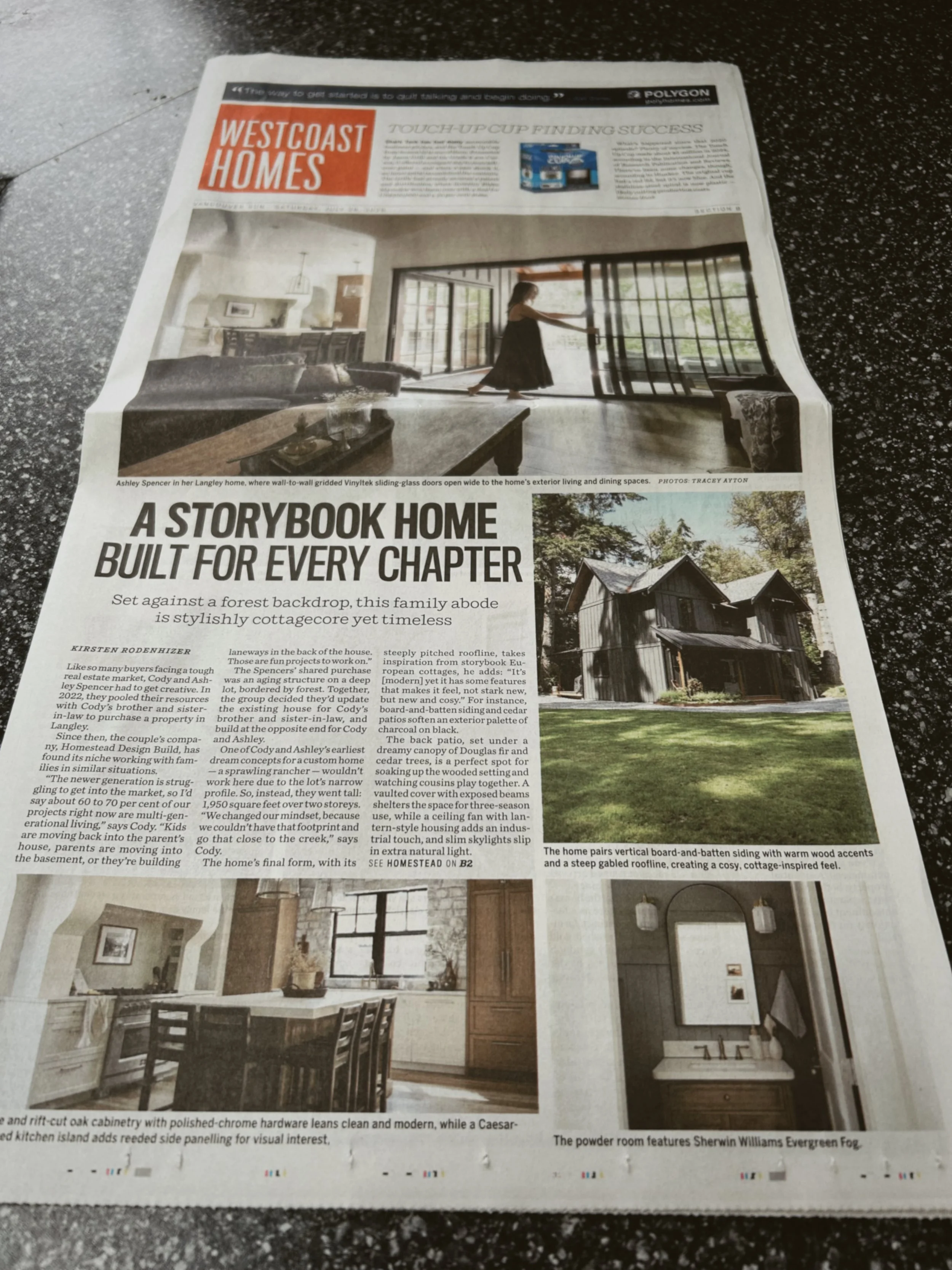 We’re honoured to share that our own family home—designed and built by Homestead Design Build—was recently featured in the Vancouver Sun. The article, titled “Set Against a Forest Backdrop, This Family Abode Is Stylishly Cottagecore Yet Timeless,” offers a look into the heart of the home we built not just for today, but for the many seasons of family life still to come.